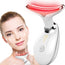 - Face and neck are treated with blue light, green and red can help skin care products absorb skin, increase cell metabolism, restore skin firmness